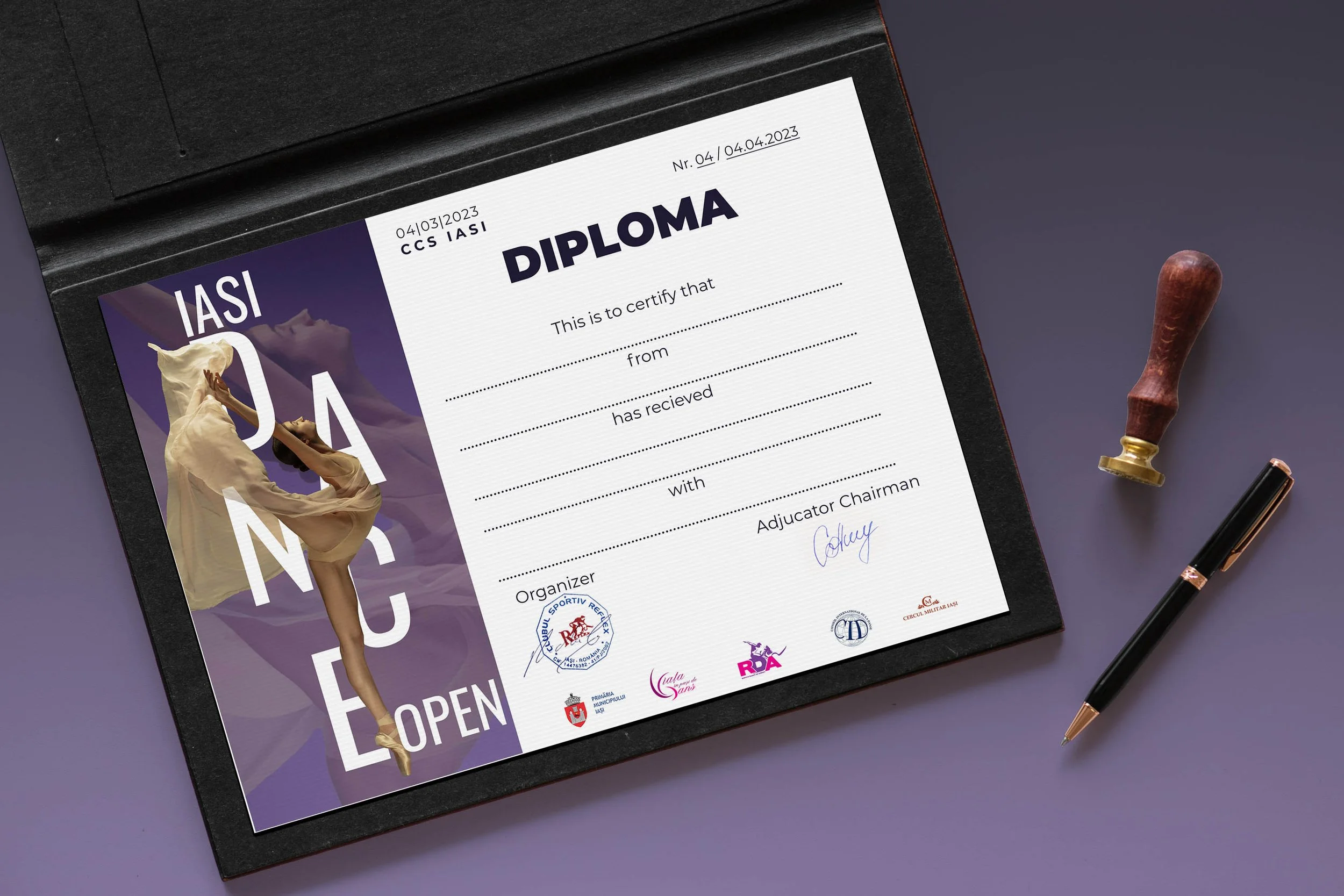 This branding project was created for “Iasi Dance Open” a dynamic and expressive dance competition held in Iasi, that celebrates the art of movement in all its forms—from elegant couple dances to powerful contemporary performances, with a touch of street style energy. The visual identity aims to reflect the fluidity and intensity of the competition through a bold color palette of deep purples, dark blues, and crisp white accents. Designed for posters, badges, and diplomas, the branding balances artistic flair with sleek professionalism, capturing the rhythm and emotion at the heart of every performance.